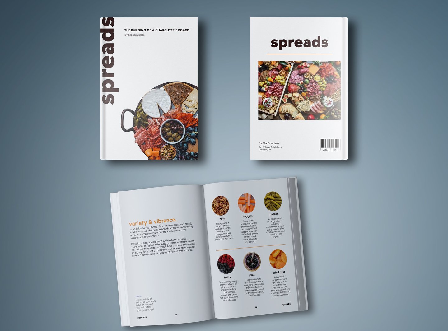 In Visual Communication Design II, my final project was to create a 30 page cookbook. I chose to design a book that is all about charcuterie boards. Each chapter described one of the details, like the cheeses, meats, breads, dips, drinks and had recipes at the end. Through this project, I learned how to establish a cohesive story from beginning to end, but not lose the reader by boredom. Designing this cookbook was such a rewarding experience!